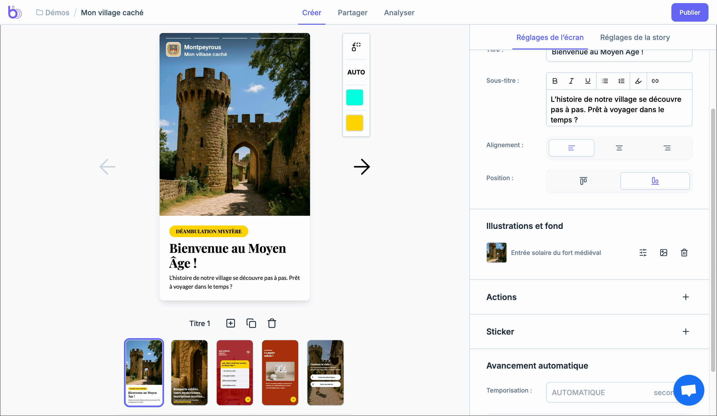 Certaines équipes ont aussi choisi Blober pour concevoir des dispositifs d'exposition mobiles. À Montpezat, une exposition itinérante a été créée pour circuler dans les mairies, offices de tourisme, lieux de passage… Légère, facile à installer, elle repose sur des roll-ups classiques… enrichis de QR-codes.