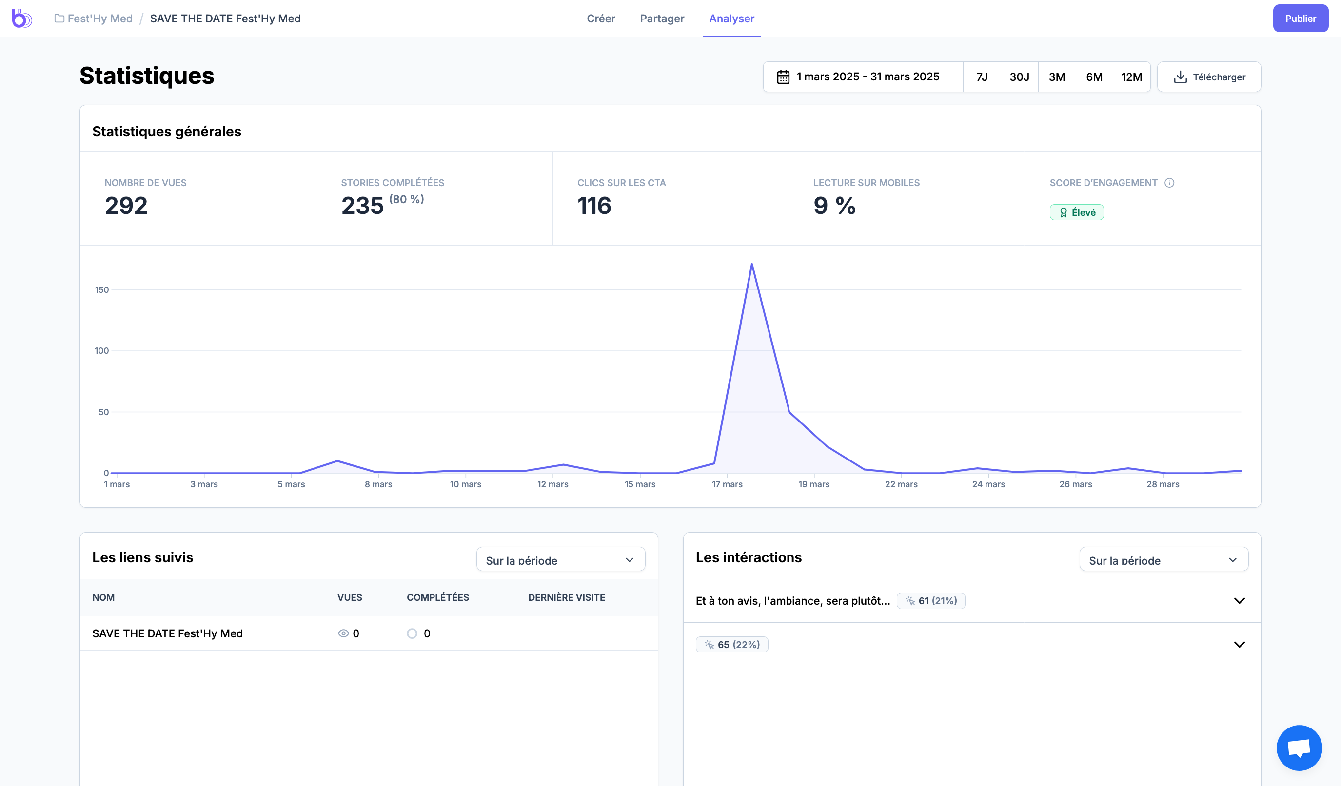 Dans la plupart des cas, Blober n’est pas là pour remplacer les supports habituels, il les prolonge. Dans les campagnes internes par exemple, les stories viennent soutenir l’impact d’un mail, donner un relais au PDF, booster l’intérêt pour une annonce ou une info. Et elles permettent aussi de mesurer l’engagement et l’efficacité !